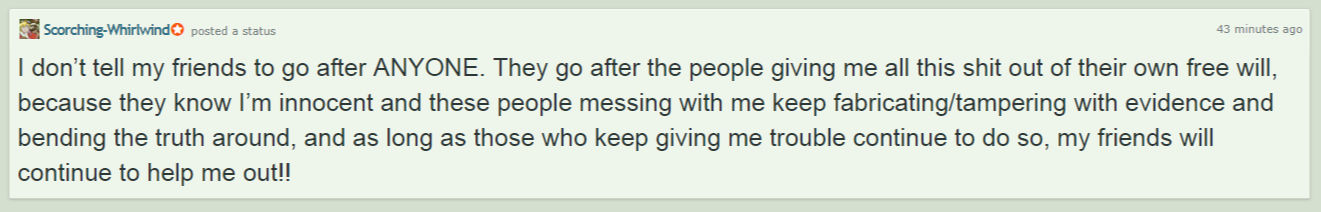During the drama involving Scorching-Whirlwind, I came across posts about Scorching-Whirlwind. To my surprise, he was actually someone I want to avoid having any form of contact because he was roleplaying smut with an underage girl and other things that do include harassment and stalking.
