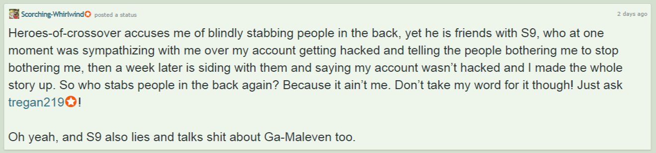 (Zero didn't lie about Ga, Scorching. You, Ga, Zeit, Shockwave and Terry do lie and pin the blame on people without valid or actual proof and without reason. You even have ties to Mosquito.)