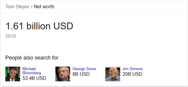 That's a lot of "a few dollars here and there stolen from less fortunate kids".NextGenAmerica is very much a real organization headed up by Tom Steyer, who is very much a billionaire, liberal activist from California who, along with his alarmingly-mannish wife, has pledged to "contribute most of his wealth", but is somehow still worth $1.61b and has only gained more wealth over time.